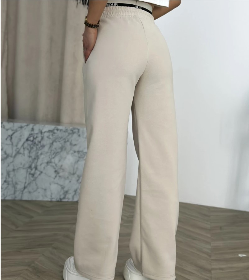 Modieuze beige joggingbroek die comfort combineert met een stijlvolle uitstraling.