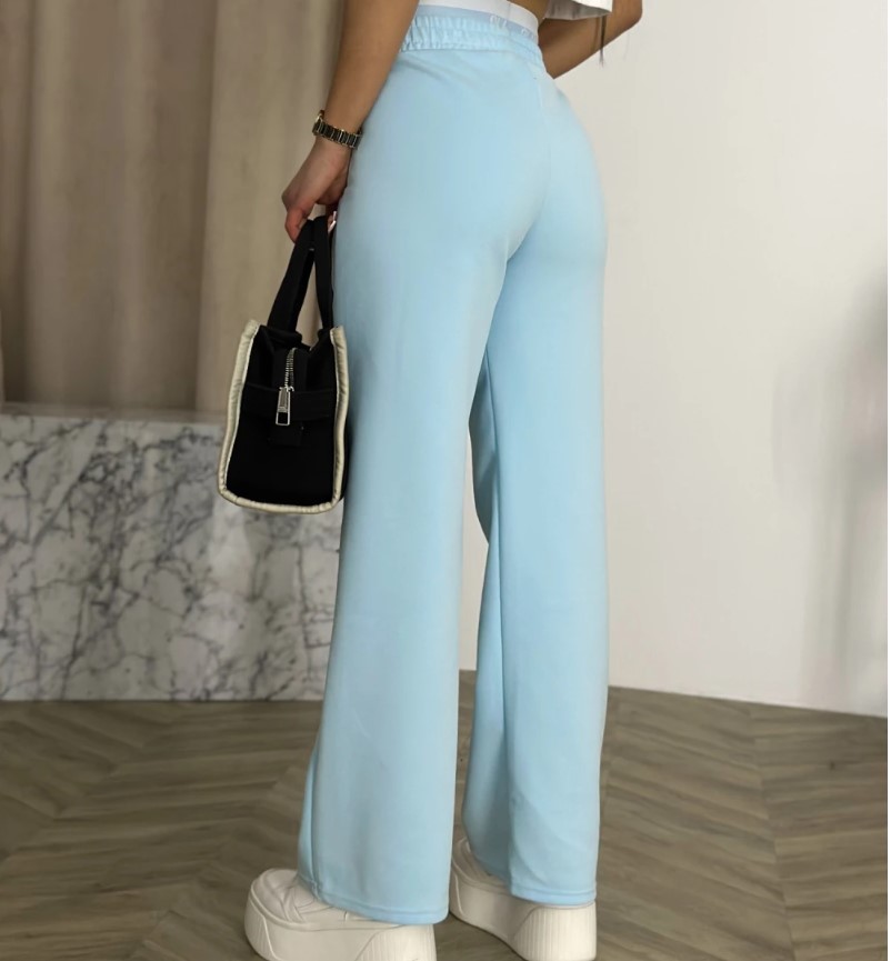 Lichtblauwe katoenen joggingbroek met wijde pijpen